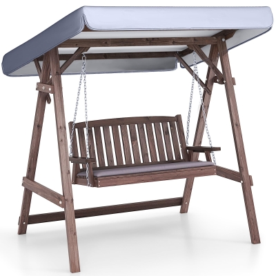 Wooden Porch Swing, 2 Person A-Frame Outdoor Swing with Adjustable Canopy, Cushion, Armrests