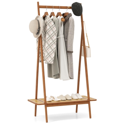 Bamboo Clothing Rack, 65.5” Clothes Rack with Top Hanging Rod