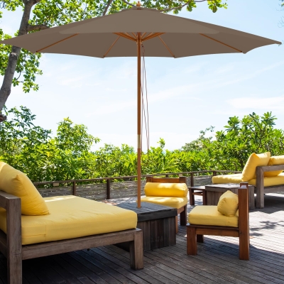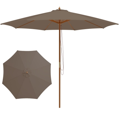 10FT Patio Umbrella, Outdoor Table Market Umbrella w/8 Wooden Ribs