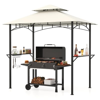 8x5 Ft Grill Gazebo, 2-Tier Barbecue Gazebo with 2 Shelves