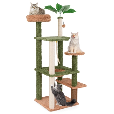 Plant Cat Tree, 60 Inch Green Aesthetic Cat Tower with Sisal Scratching Posts