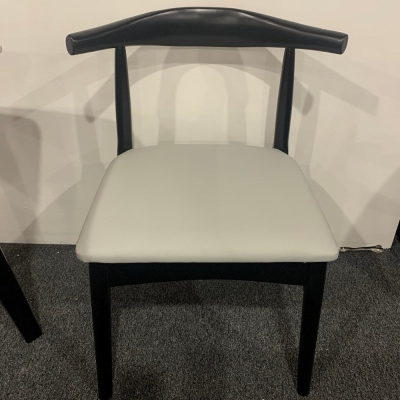 Leo Timber Chair/Solid wood legs/ PU leather/Minimalist/Grey Cushion